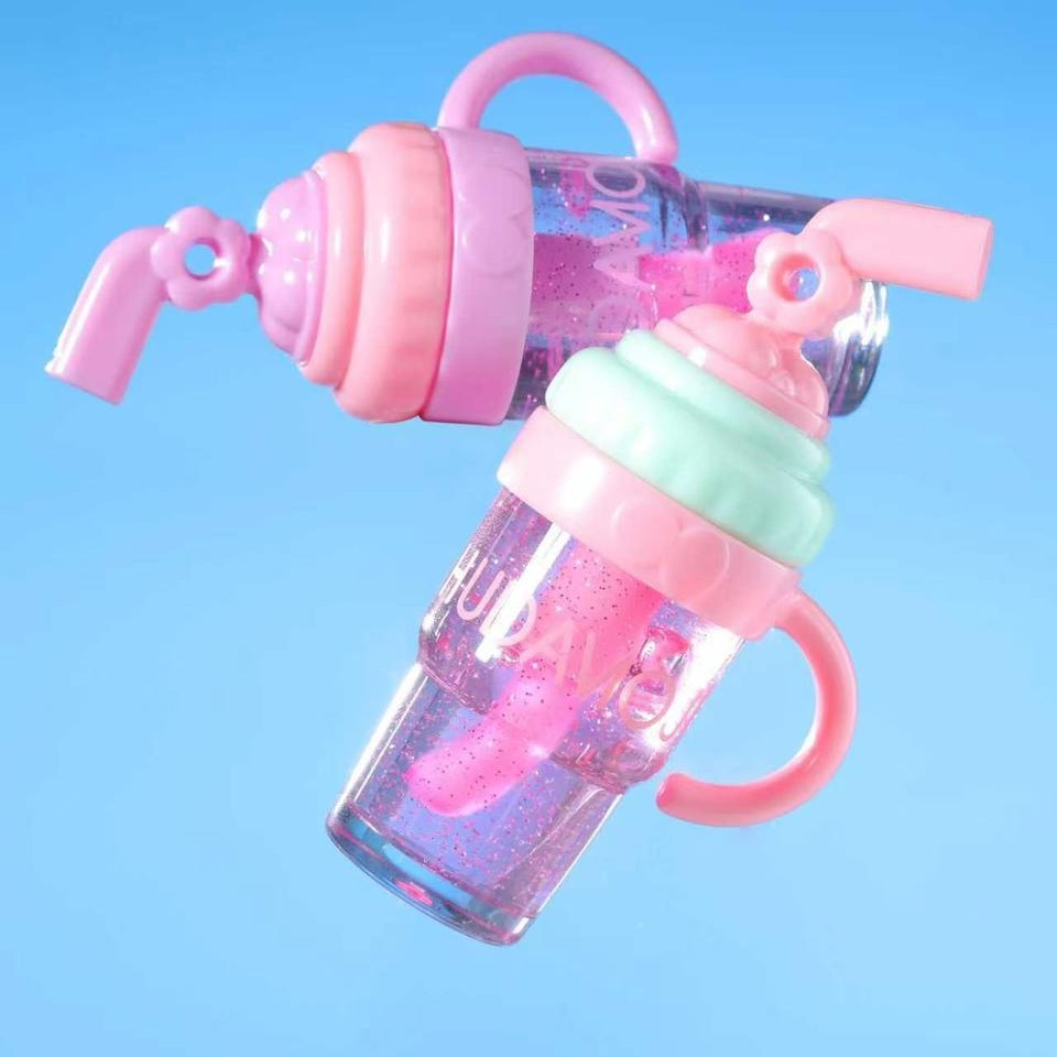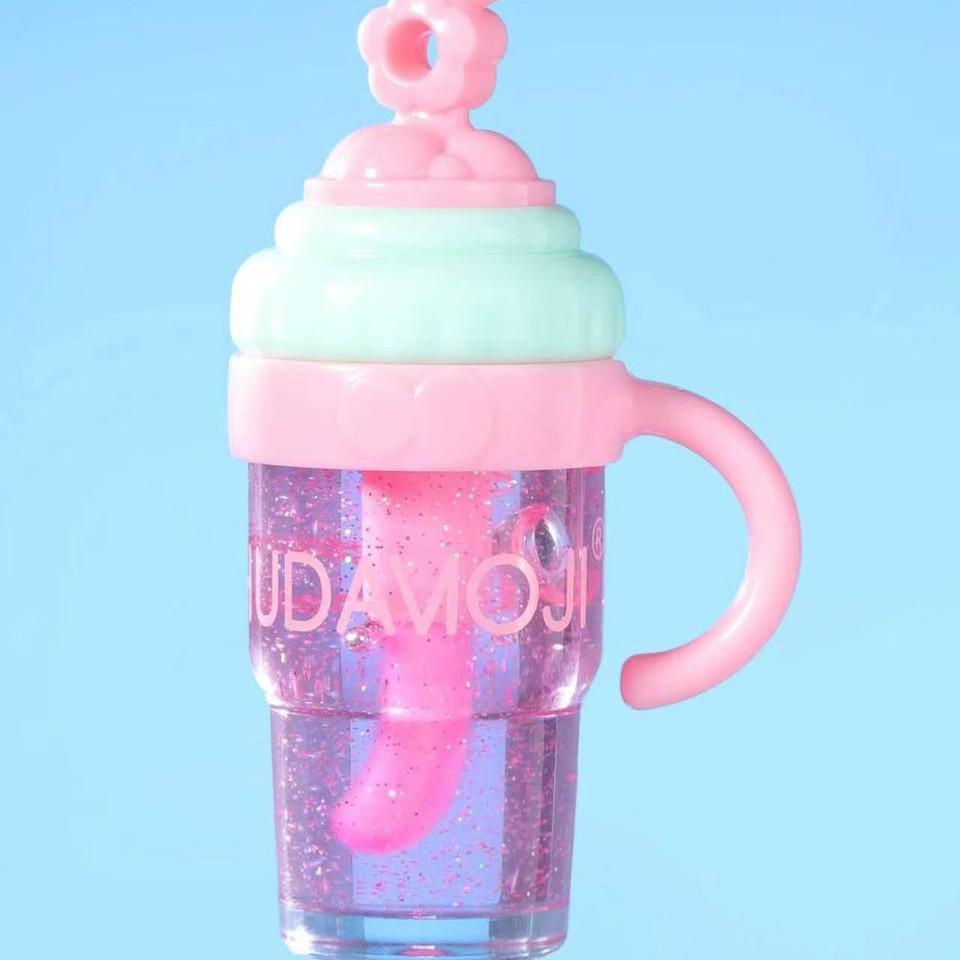 Hudamoji Milk Tea Tinted Lip Oil Gloss is presented in a coffee mug-shaped container, offering a unique aesthetic. This tinted lip oil gloss is available in three flavors, delivering a nourishing formula that enhances lips with a subtle pink tint. Ideal for achieving hydration alongside a hint of pink color.